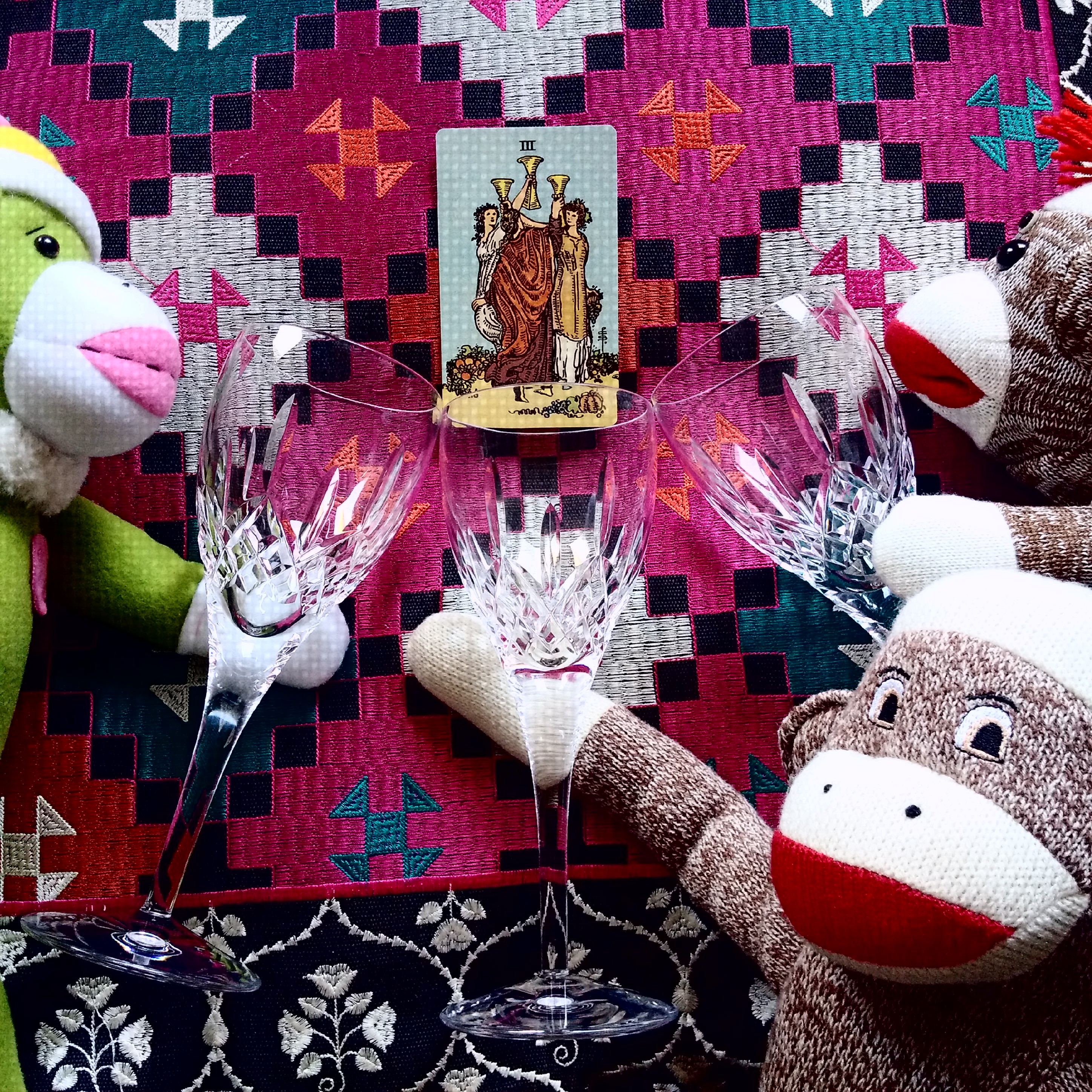 This lady is one big loving Earth mama, generous in her curves as the fertile being she is. Her nurturing isn’t only maternal in the literal sense; she’s also about sowing one’s talents and reaping the rewards, enjoying the sumptuous, sensuous pleasures of life, her celestial crown showing the power and inspiration she channels from the divine in addition to worldly abundance. She is regal, yet she is chill, comfy in her loose draping gown as she reclines on her velvety-looking cushions (their crimson color evoking the root and sacral chakras, respectively grounding and sensual energies). Embodying compassion, creativity, nature, and sensuality, she’s an absolute goddess. She encourages us to birth new life or ideas out into the world, to revel in the bounty of our natural environment–and to provide others with a loving, peaceful, and supportive environment cultivated through feminine wisdom and care. This is just a lush, beautiful card, and I always feel blessed by a visit from the Empress. (I think Miss Monkey fancies her flowy gown for today’s photo shoot, too.)