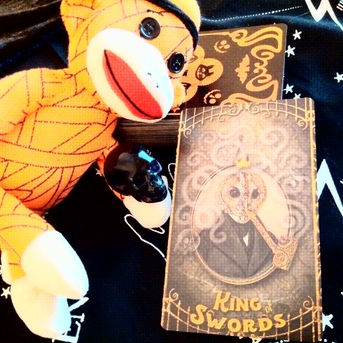 Sooo…on its surface, let’s just say it: This card is pants-pissing terrifying. A tower struck by lightning, fires raging, smoke billowing, people (and primates) falling in the dark of night. This is one card that seems to come with audio included as I can hear the explosion and screams. Lovely. Looking at the card’s less literal meaning is still scary as hell to me. Why? Because it represents big changes, total upheaval, and nothing scares the ever-living stuffing out of me more than change. I like stability. Calm. Consistency. You could ask, well, who doesn’t, but I’d venture to say that some restless folks out there do like to jump from one thing to the next, always looking to shake things up whereas introverted little hermits like me thrive on routine, feeling safe within what they already know. But the Tower is the big shake-up that comes for all of us at some point or another. And it’s not without good reason. What we might think is stable is not actually sustainable, and our shaky foundation will inevitably crumble and bring the whole flimsy house of cards to the ground. Something’s gotta give, and when it does, it levels everything, bringing us back to square one–but with a chance to rebuild for our better good. So, this card’s not bad. It’s not the villain–our own delusions and dishonesty are. We can kid ourselves that everything is fine and that we can keep going as we are without consequence, but the Tower tells it like it is: Nope. Do-over.